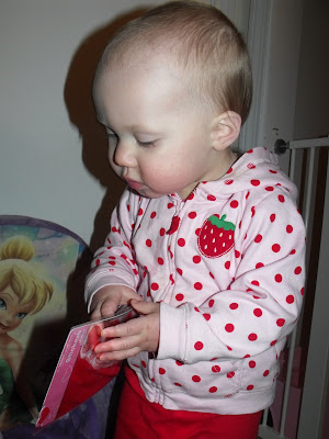-Words: Mama, Dada, Lily, Papa, Nana, you've now said Grandma a few times, Dirty, Diapier, Pepper, Purple, Three, Up,Sit, this, that, Jacob, Jack, yes, bum bum, cracker, done, pretty, tree, baby, Gracie's, me, bowl, cinderella ("ella"), thank you, open, nice,princess, ok, please, ketchup, and no. You still say milk as "mmmmm."